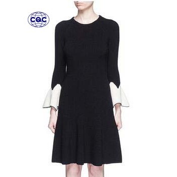 高爾夫GOLF修身显瘦喇叭袖针织连衣裙