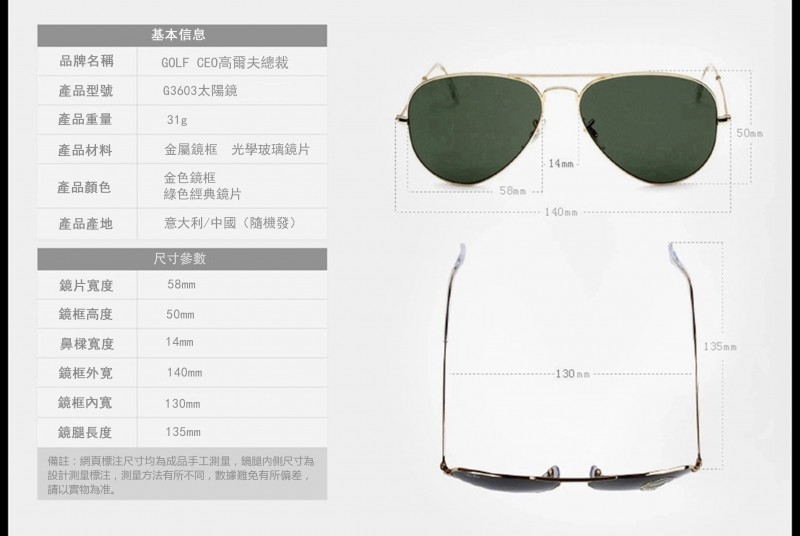 GOLF CEO高尔夫总裁 G3603飞行员太阳眼镜