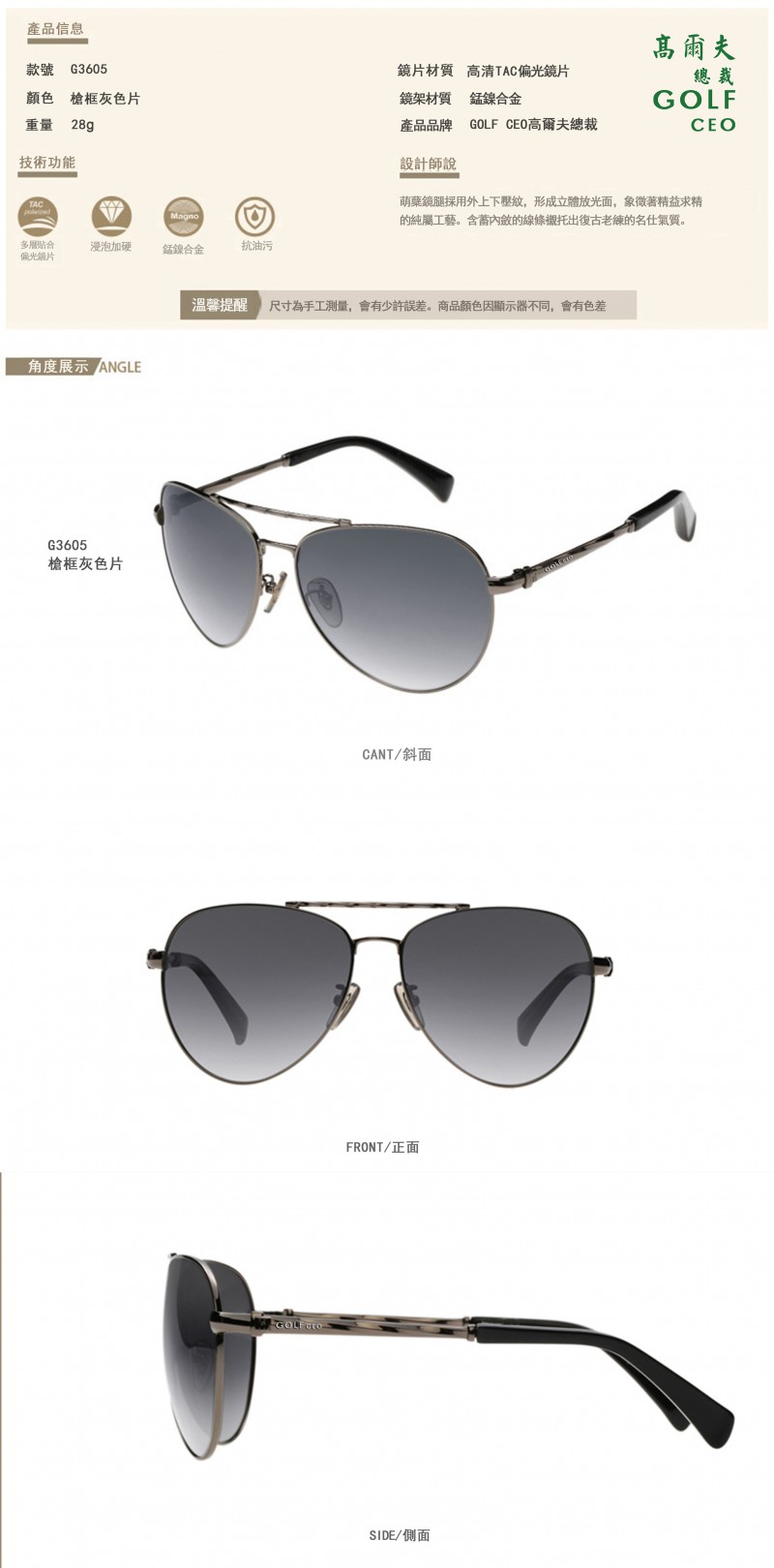 GOLF CEO高尔夫总裁 G3605偏光太阳眼镜 男款