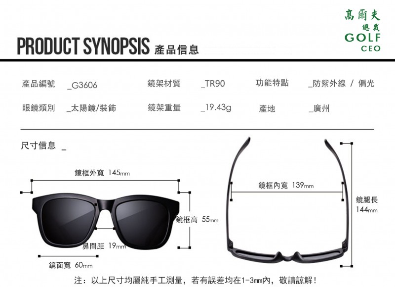 » GOLF CEO高尔夫总裁 G3606偏光太阳眼镜 男款
