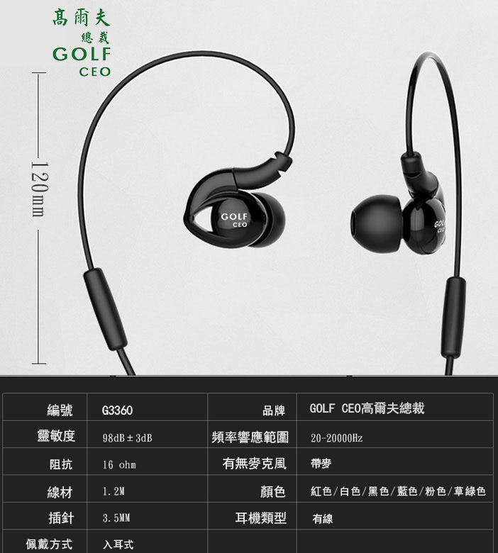 GOLF CEO 高爾夫總裁 耳塞式有线蓝牙耳机G3360
