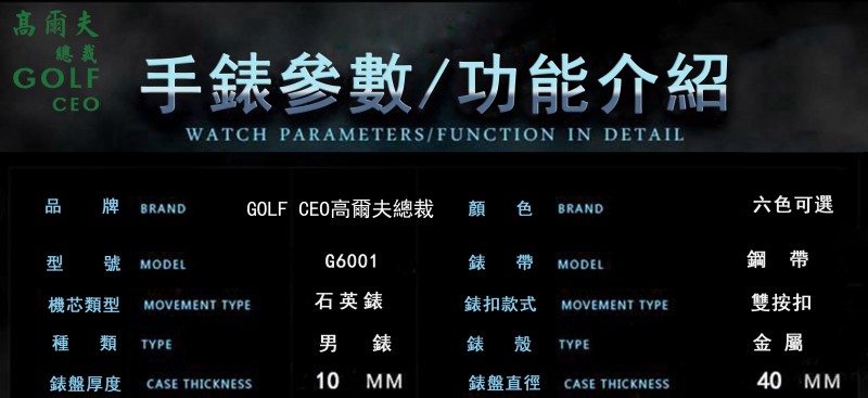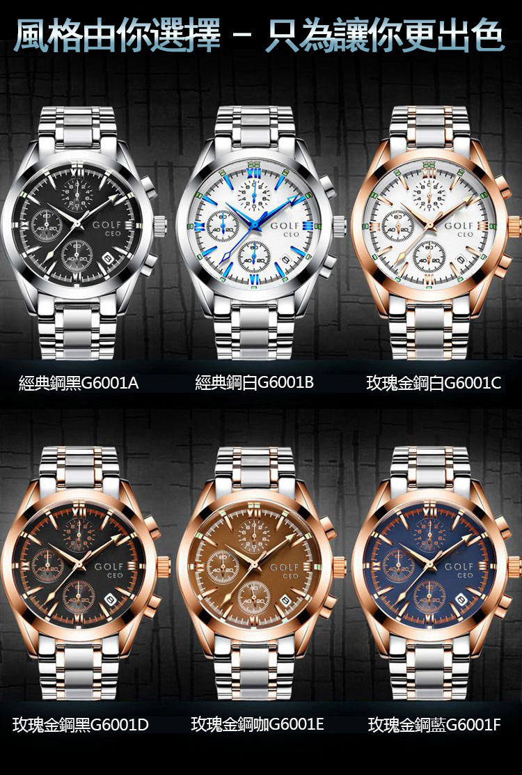 GOLF CEO高尔夫总裁 G6001男士石英表