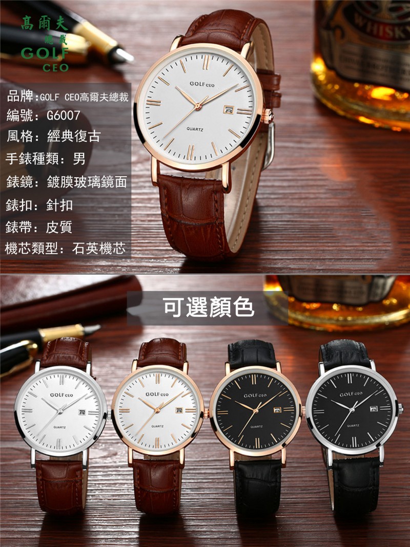 » GOLF CEO高尔夫总裁 G6007男士经典复古石英表