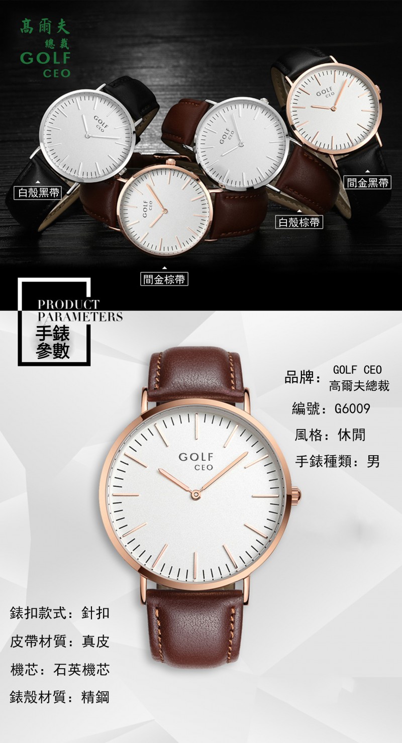 GOLF CEO高尔夫总裁 G6009男士石英表