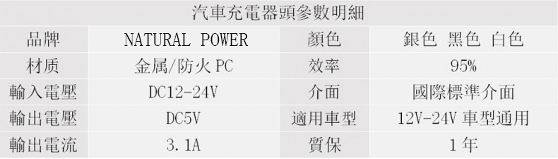 » NATURAL POWER 自然力 NP23401汽車充電器