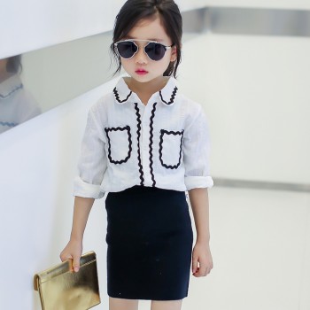 新款女童中小童中长款衬衫 韩版潮流女孩衬衣