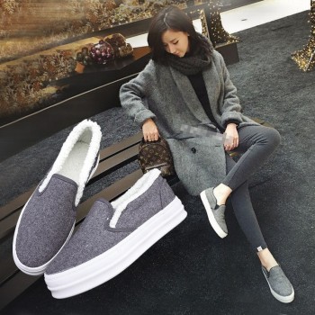 2016秋冬厚底乐福鞋女鞋一脚蹬懒人鞋韩版女棉鞋松糕休闲低帮鞋子
