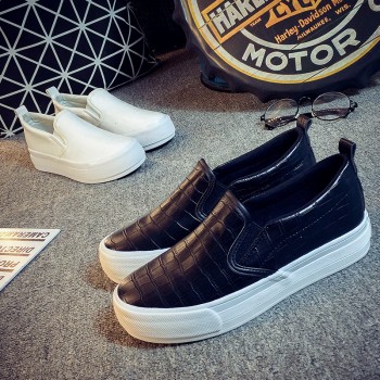 2016春季黑色帆布鞋女低帮休闲鞋韩版潮厚底小白鞋懒人鞋女乐福鞋