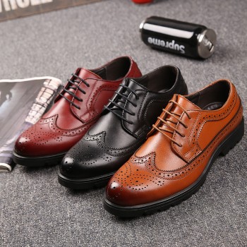新款秋冬男鞋布洛克男士休闲皮鞋英伦牛皮内增高鞋子真皮休闲鞋